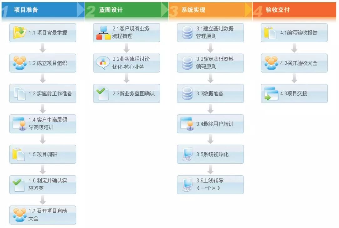 先有藍(lán)圖(流程、制度),后有ERP!避免邊走邊改,避免不要過程就直接想有結(jié)果的誤區(qū)?;ù蟛糠謺r(shí)間在流程與模擬上,就是項(xiàng)目最快最好上線的唯一途徑!